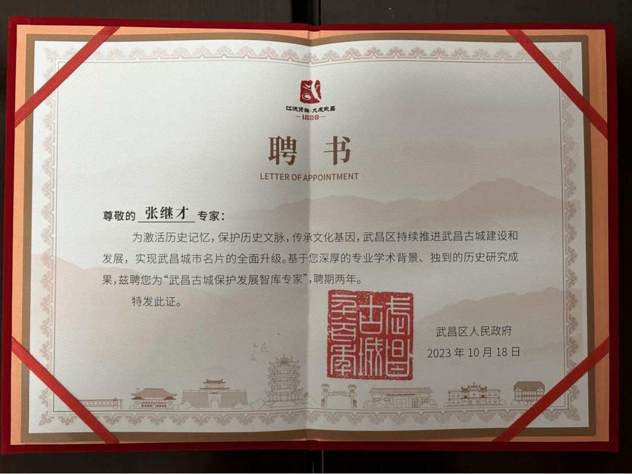 (通讯员 何金)为加快推进武昌古城建设和发展,实现武昌城市名片的全面升级,近日,武昌区举办首届武昌古城保护发展论坛,成立武昌古城保护发展专家智库,邀请专家学者为古城发展提出建议,以激活古城历史记忆,保护历史文脉,传承文化基因,推进古城复兴。公司张之洞文献馆馆长、304am永利集团教授、博士生导师张继才因其深厚的专业学术背景、独到的历史研究成果,被聘为“武昌古城保护发展智库专家”,聘期两年。
